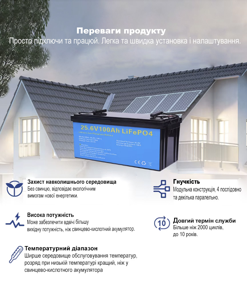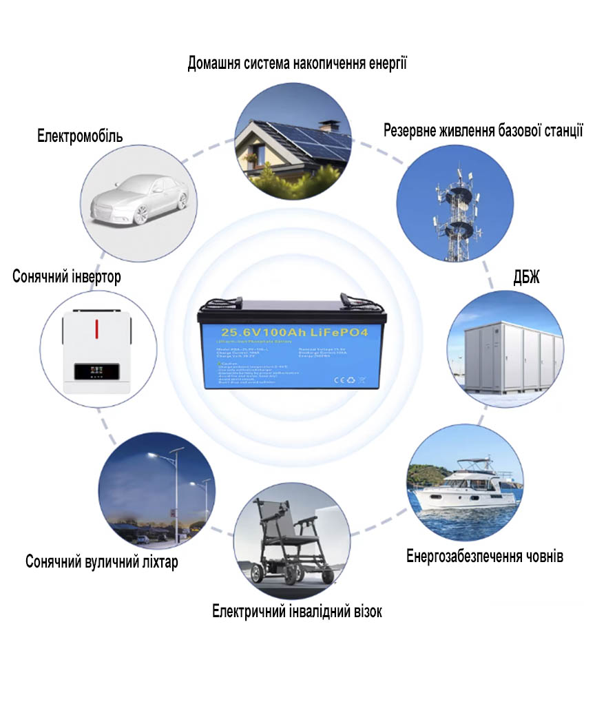 Безпека: вбудовані елементи BMS класу А, із захистом від перезаряду / надмірного розряду / перевищення температури / короткого замикання."