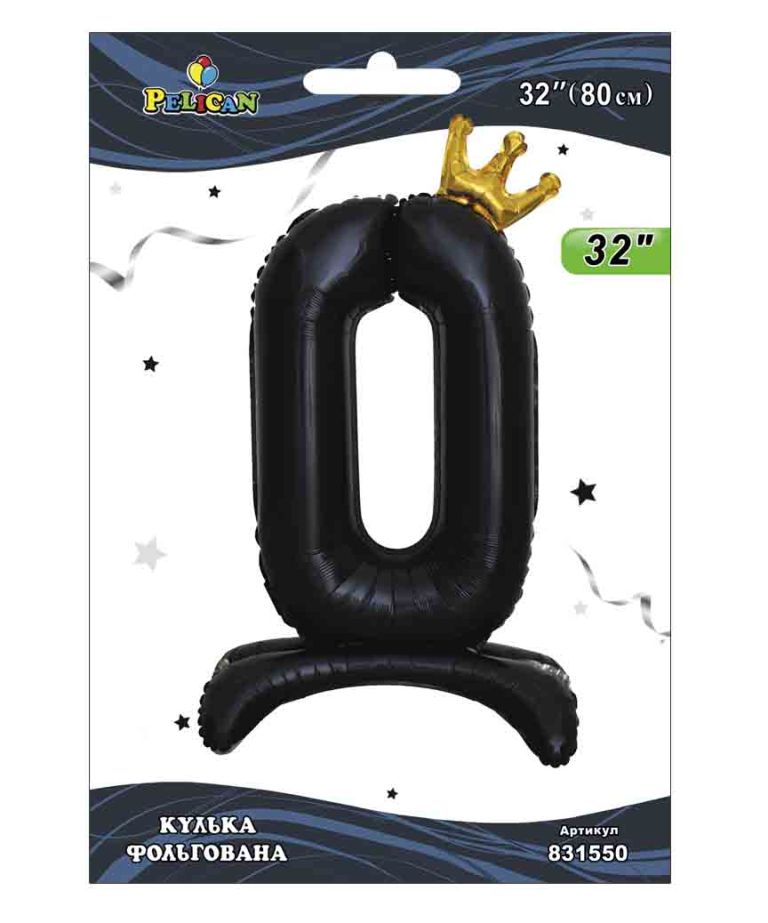 Фольгована цифра з короною на підставці "0" ЧОРНА 32"(80cm) Pelican 1шт.