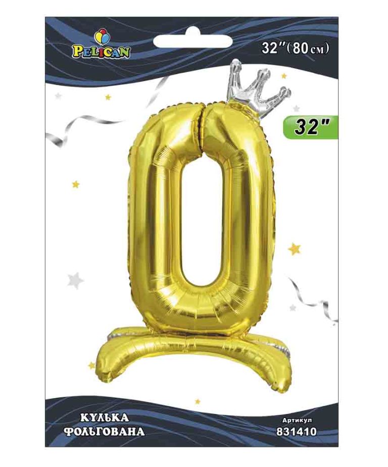 Фольгована цифра з короною на підставці "0" золото 32"(80cm) Pelican 1шт.