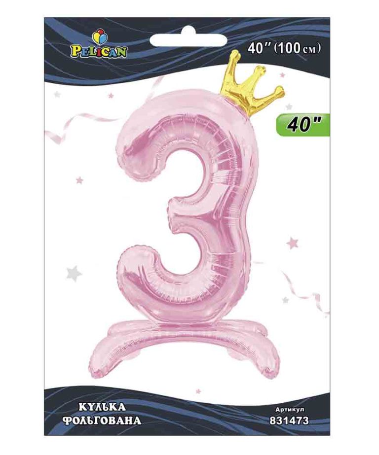 Фольгована цифра з короною на підставці "3" рожево- перламутрова 40"(100cm) 1шт.