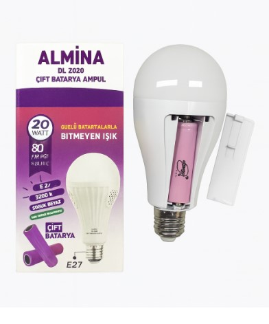 Лампа LED 20Вт ALMINA DL-2020 з двома акумуляторами, 5 годин автономної роботи (100)