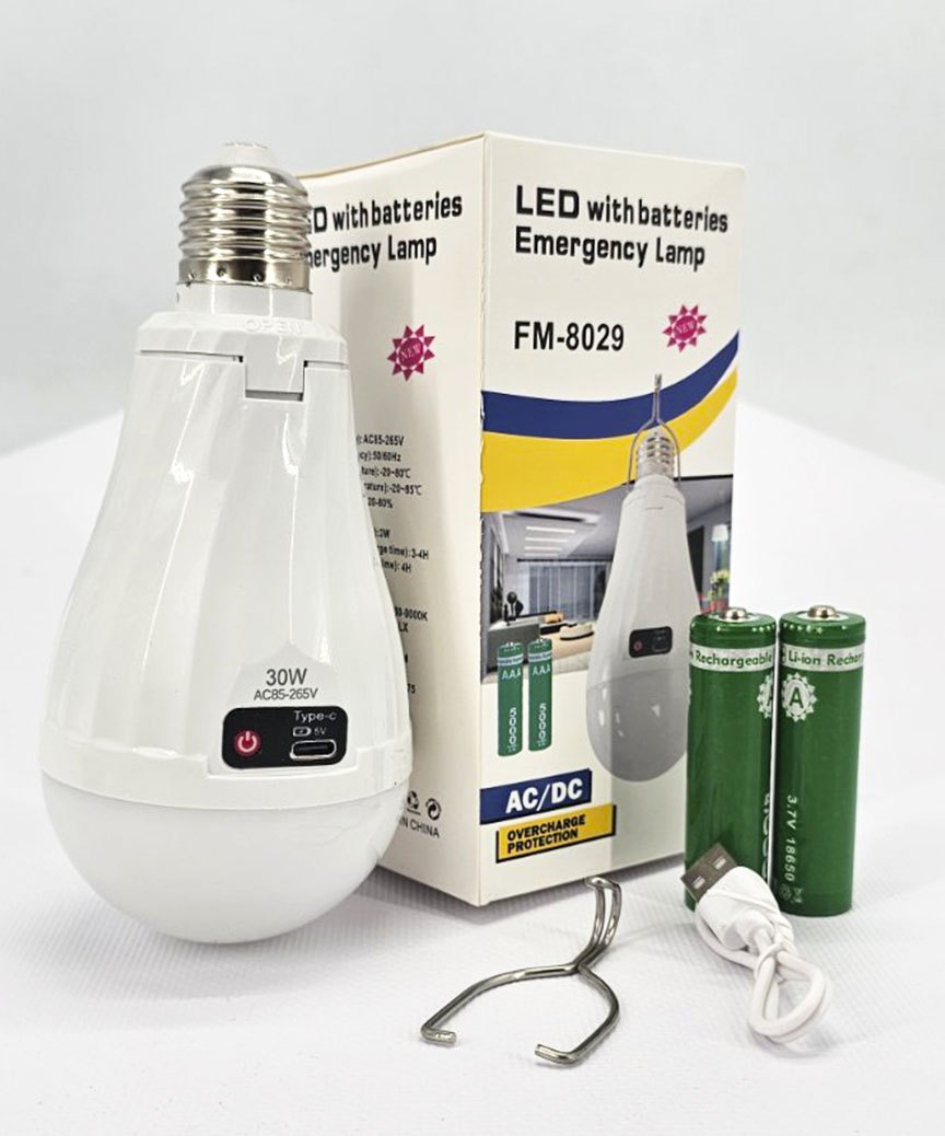 Лампа LED 20Вт Е27 з двома акумуляторами, USB зарядка, до 3 годин автономної роботи (100)