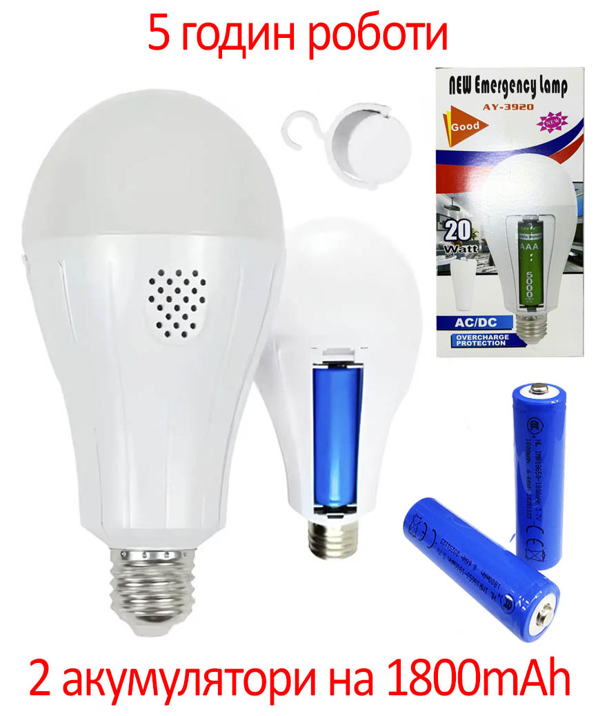 Лампа LED 20Вт з акумуляторами 2*1800mAh, до 5 годин автономної роботи (100)