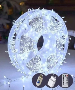 Роса-мішура 50m 1500LED, прозорий провід USB пульт ДК, білий (30)